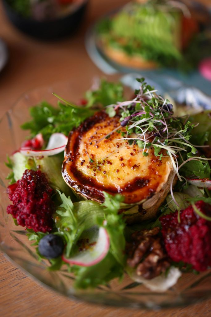- Arrosez d’un filet de miel et enfournez 8 à 10 min, jusqu’à ce que le fromage soit légèrement doré.